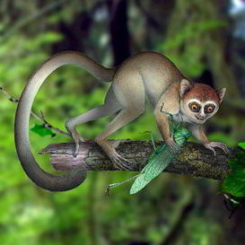 The dinosaurs held sway for over 250 million years until an asteroid or comet came along 65 million years ago and wiped them out (and scattered an iridium layer between our rock strata). To put this in perspective, reflect that humans have only been around for about 3 million years. Only ten million years after the cosmic catastrophe that killed the dinosaurs, this little fellow came along. His remains have been revealed in a Chinese fossil. He’s about the size of a mouse, but he’s a primate – the earliest one ever discovered. The name Archicebus approximates to “little monkey,” and he has several monkey-like features.