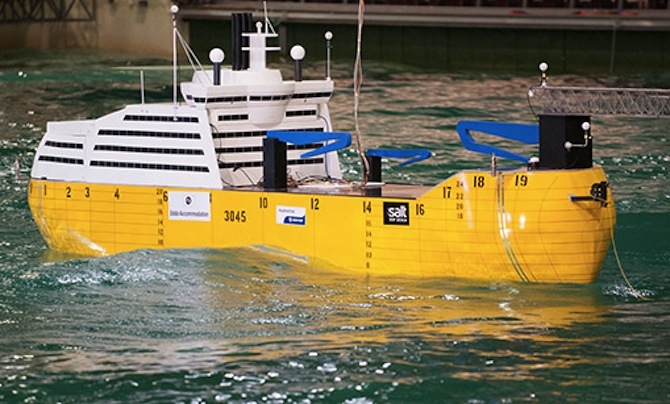 There’s an important safety aspect, too, in that it helps the ship to service rigs even in rough seas by enabling the ship to keep its position relative to the rig. The photo (by Marintek) shows how the ship will look when completed in mid-2015. And of course anyone who’s ever been seasick cannot wait for the technology to spread to cruise ships and transatlantic liners…