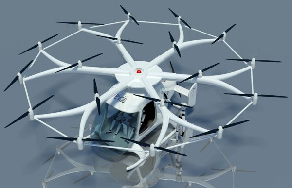 Wired tells us that a German manufacturer, E-volo, has reported successful test flights of its electric18 prop helicopter, the VC200. We’ve grown used to those tiny four prop toy ‘quadcopters’ that flit around parks, but this one carries two people and has 18 props, each powered by its own separate motor. You steer by tilting the back rotors to alter the thrust direction, and it’s claimed to be as easy to steer as the toy ones. I object to the description of it as an octodecacopter. It might be technically correct, but “18-prop helicopter” is easier to say and conveys its meaning more readily. The VC200 uses carbon fibre and has multiple batteries. One problem that occurs to me is that all of the props will have to be synchronized with equal thrust lest it unbalances itself. I guess this could be solved by computer controls similar to the ones that regulate the thrust of each rocket motor in a cluster arrangement.